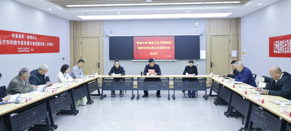 12月2日下午,银龄科普免费义诊送教活动座谈会在左权县桐峪镇召开,山西省人才服务中心副主任祁延泽、山西省专家学者协会副秘书长兼办公室主任石宝新、山西科技新闻出版传媒集团监事长闫月根、左权县副县长程振华以及各主办方、省级医疗专家团队、左权县基层医务人员代表参加活动。座谈会上,大家围绕当地老年人群的健康状况与医疗服务需求,并就持续开展健康帮扶、加强基层卫生体系建设等议题进行了座谈交流。座谈会结束后,主办方还向当地捐赠了一批常用药品和健康养生手册用于支持乡镇卫生院日常诊疗工作,缓解部分群众用药需求。会议由左权县科协主席霍凯亮主持。